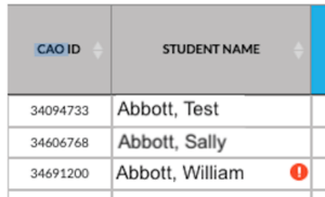 On the Manage Transcripts/Recommendations page, if a student has a red exclamation mark next to the student’s name, one or more of the following requires attention: