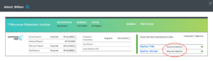 - A student may have a problem with the teacher recommendation request. Click on the name of the student and view the college data. If you see Requires Attention next to the teacher’s name AND the student has completed the FERPA process, this likely means the teacher email address or name does not match the information in the Teacher Portal. Contact your MEFA Pathway account manager to resolve this issue.
