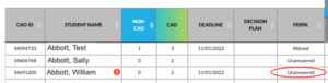 - On the Manage Transcripts/Recommendations page, if a student has a Common App ID but the FERPA column is empty or marked with Unanswered, this indicates the student closed the re-direct page before the FERPA process was completed.