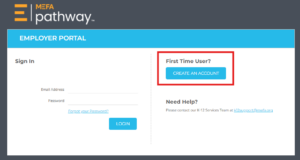 After receiving the email, click the link to the Employer Portal in the first paragraph. Once on the webpage, under First-Time User, select Create an Account.